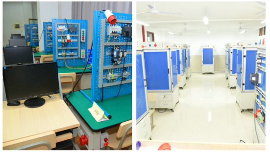 电气控制实验室为机电技术应用专业重点实验室。实验室现有移动式四工位电气安装实验台,电气系统安装与调试实验装置,“电气控制线路安装和调试运行”技能实验考核装置40套。